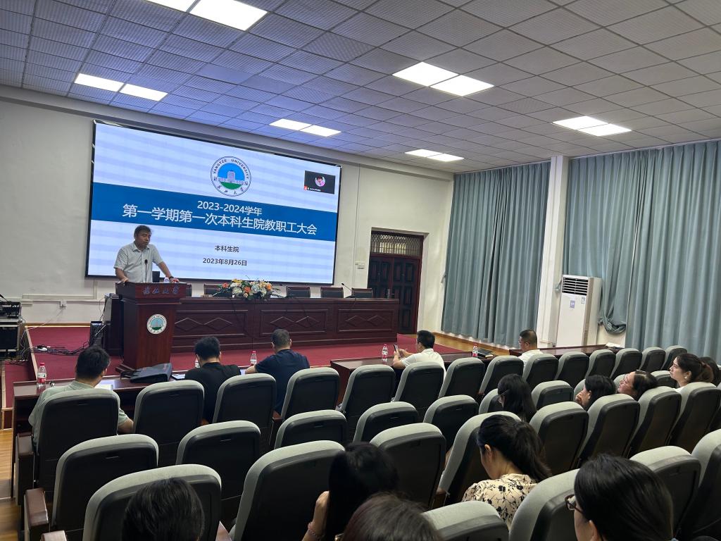 (通讯员 黄小云)2023年8月26日上午,本科生院在国际学院学术报告厅召开了全体教职工会议,此次活动由许锋同志主持。