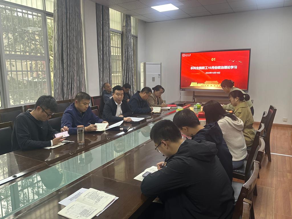 10月19日下午,本科生院党支部在宝石花社区102开展10月政治理论学习及支部主题党日活动,党支部书记张科同志主持会议,本科生院全体教职工参加了本次学习。