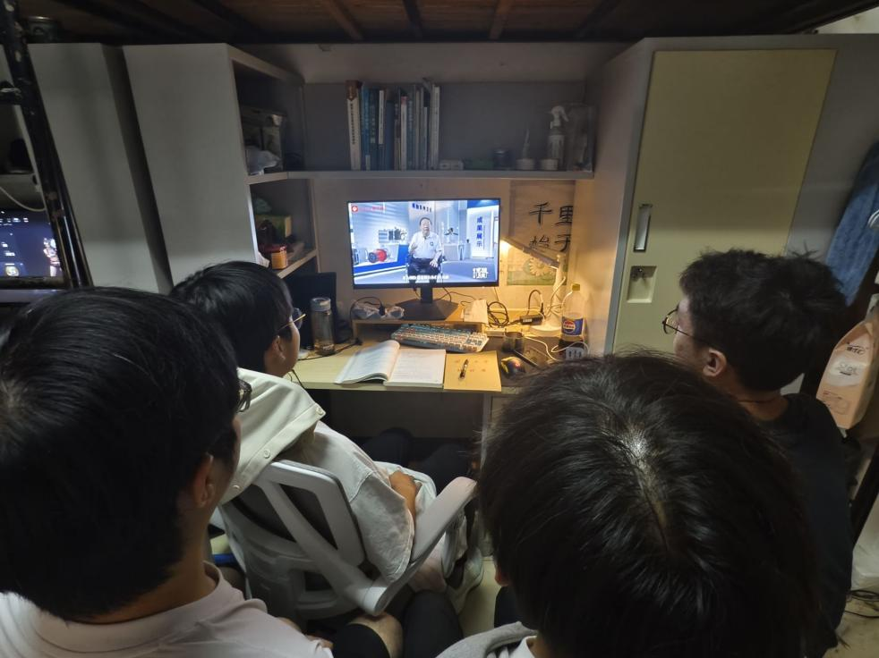 在东校区团委工202会议室,学校“青年马克思主义者培训班”学员、团学骨干共聚一堂,观看学习大思政课并展开热烈讨论。第十八期“青马班”学员、校学生会主席团成员、教育与体育学院2022级本科生程璟怡说:“收看完思政大课,让我对一代代科学家接力筑梦空天、建设‘空天强国’的光荣征程有了更加深刻直观的认识,‘空天强国’梦也是中国梦的重要组成部分,作为学生干部,我将带头引领广大青年学习科学家精神,练就过硬本领,紧跟时代步伐,为全面推进中国式现代化贡献青春力量!”