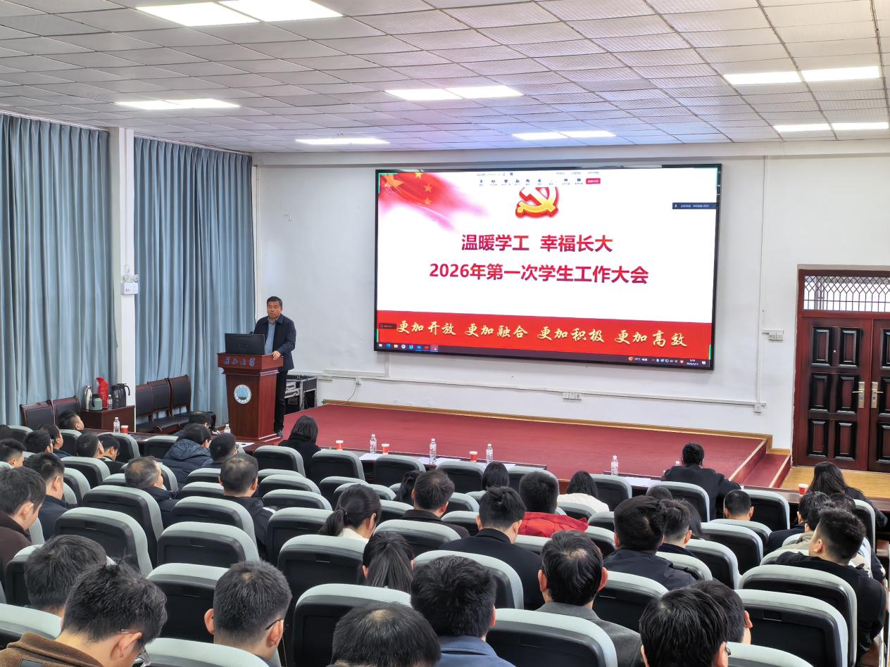 【通讯员 郭 凯】春启新程聚力育人。3月11日,学校2026年第一次学生工作大会在荆州校区15教101国际学术报告厅召开。党委常委、副校长许锋,党委学生工作部、党委研究生工作部、团委等职能部门负责人,各学院党委副书记、全体专职辅导员参加会议。武汉校区同步视频参会。