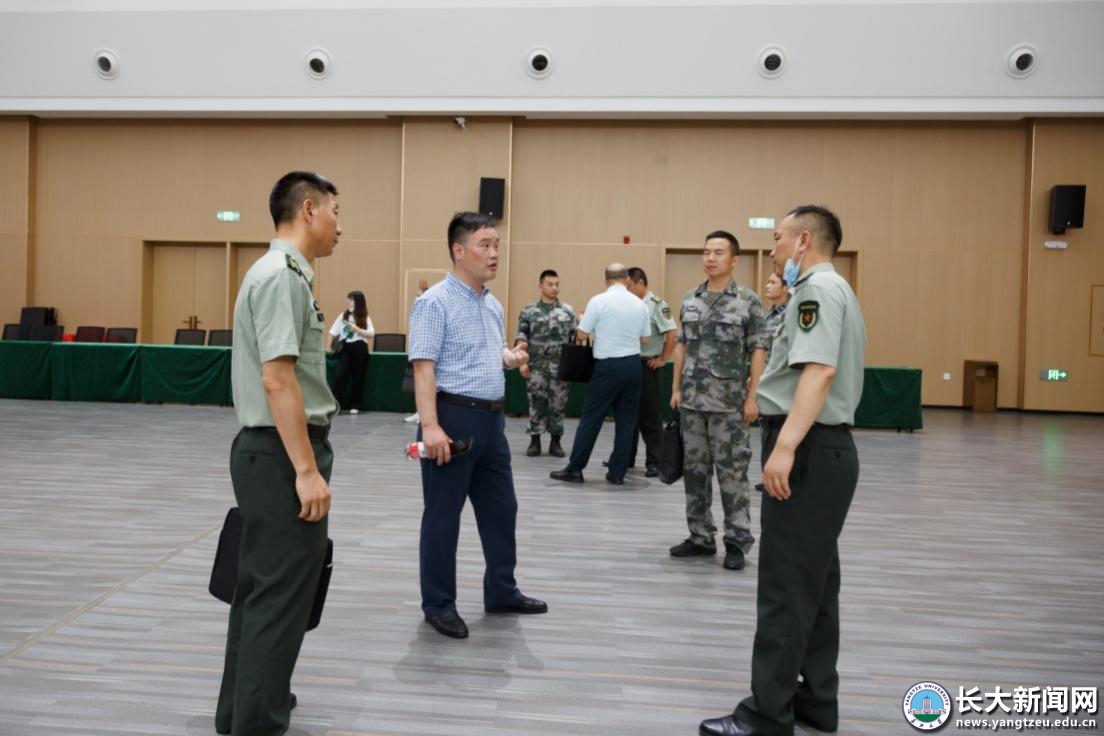 学工处讯(记者 汤慧珍)6月20日下午,荆州市军分区动员处处长安文权、荆州区武装部部长朱纪红一行来校,就征兵工作站规范化建设工作开展检查验收。