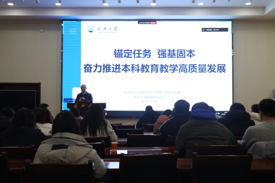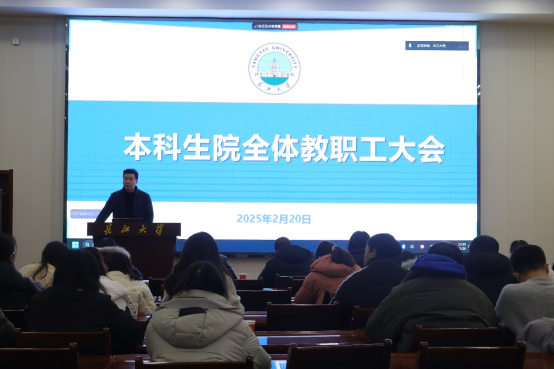 (通讯员 余子昂 徐茵 记者 尚玉豪)凝心聚力担使命,砥砺奋进创一流。2月21日下午,本科生院2025年度第一次全体教职工会议在东校区就业宣讲大厅召开,本科生院全体教职工参会,会议由党委学生工作部部长、本科生院常务副院长张科主持,武汉校区线上同步参会。