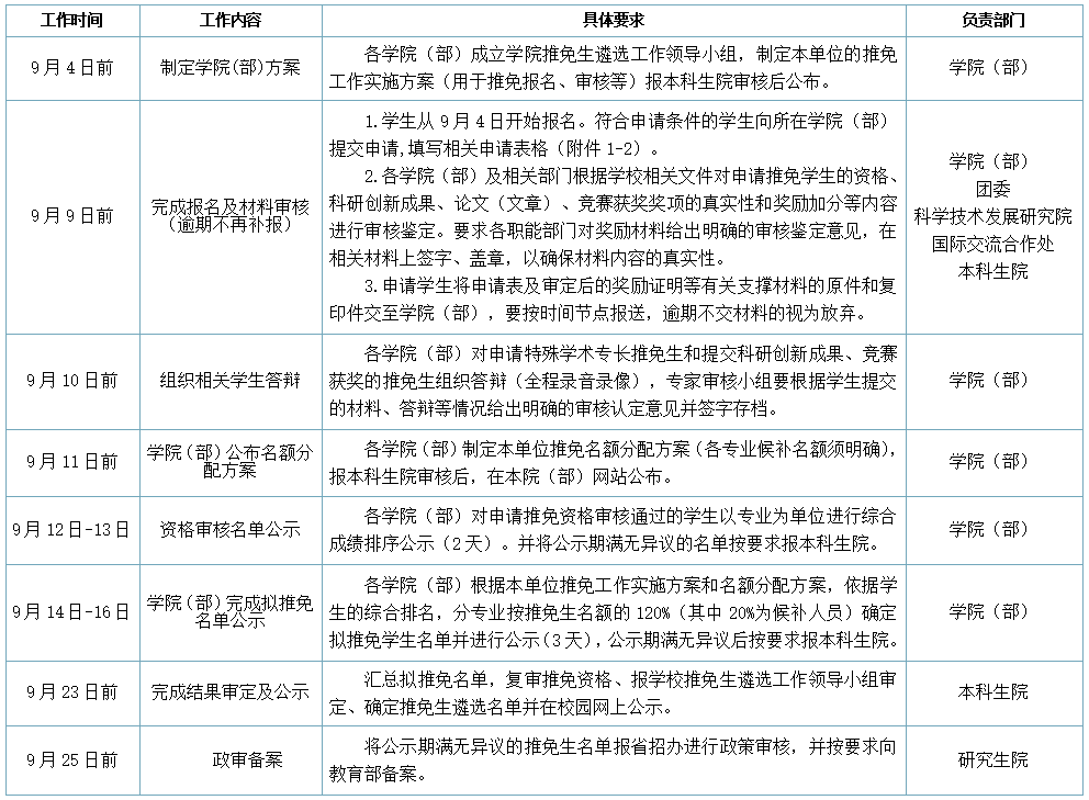 2.精心组织。各学院(部)制定本单位的推免工作实施方案,报本科生院审核后公布。要精心组织,严格按照文件要求,严格履行推荐程序,严格把握推荐条件,按时完成各阶段任务。