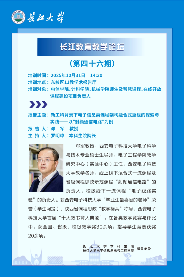上一条:新工科背景下课程架构融合式重组的探索与实践——邓军教授做客长江教育教学论坛