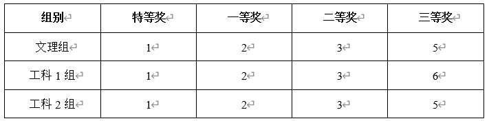 本届竞赛按照组别分设特等奖3名、一等奖6名、二等奖9名、三等奖16名,优秀组织单位若干个。