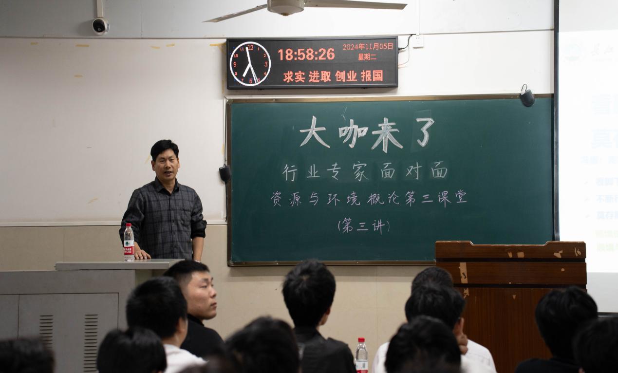 名师赋能,蓄力启新。2024年11月5日19:00,资源与环境学院于东校区12教502教室隆重举办“大咖来了”——行业专家面对面2024年度第八讲。本次讲座特邀我国地球化学领域知名学者、国家杰出青年基金获得者汤艳杰教授主讲,学院党委书记王宁老师及24级全体本科生参与,会议由辅导员郭政老师主持。