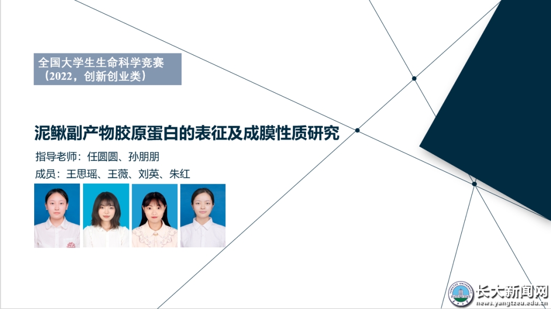 新闻网讯(通讯员 孙朋朋)近日,由生命科学学院任圆圆、孙朋朋老师指导,王思瑶等同学完成的《泥鳅副产物胶原蛋白的表征及成膜性质研究》作品,在全国大学生生命科学竞赛(创新创业)中获一等奖。